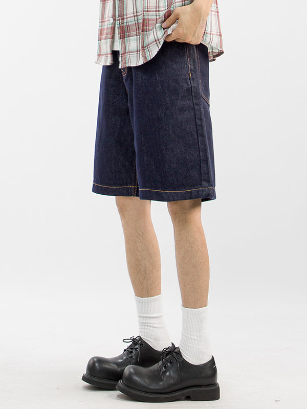 Bermuda uomo in denim blu vintage ampio e casual, facile da abbinare